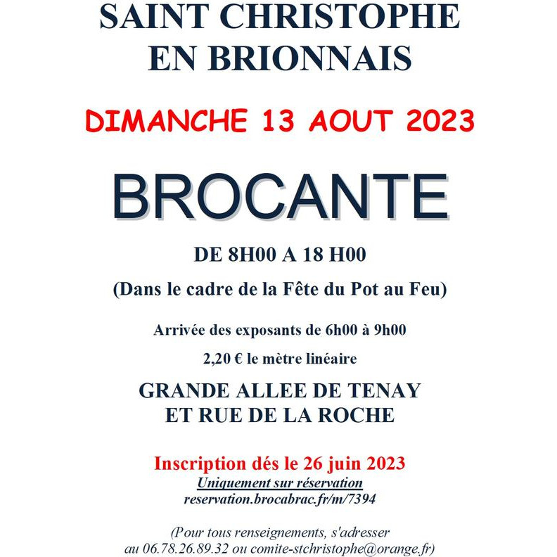 Fêtes du pot au feu: autour de 400 repas le midi et 1800 le soir. Forains et animations de rue. Bal en soirée. Petit marchés au sein de la brocante. Buvette, sandwichs, frites.