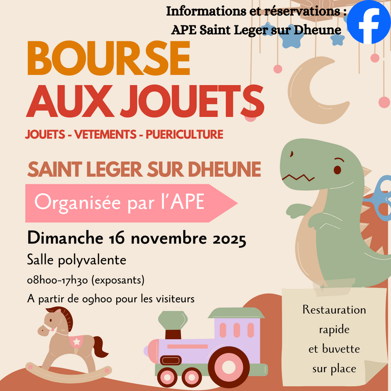 La bourse aux jouets et vêtements pour enfants aura lieu le dimanche 16 novembre 2025 dans la salle des fetes. Les portes s'ouvrent à 9h00 pour le public. L'évènement se clôturera à 17h30.