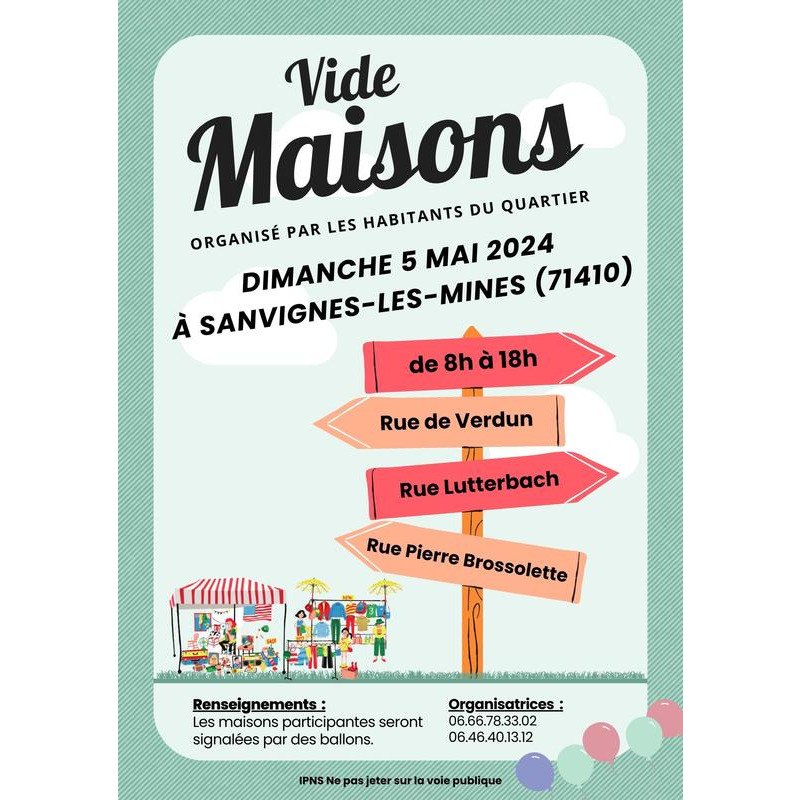 Plusieurs habitants des rues de verdun, lutterbach et pierre brossolette à sanvignes-les-mines (71410) proposent à la vente des articles en tous genres à l'occasion de leur 2nd vide maisons.