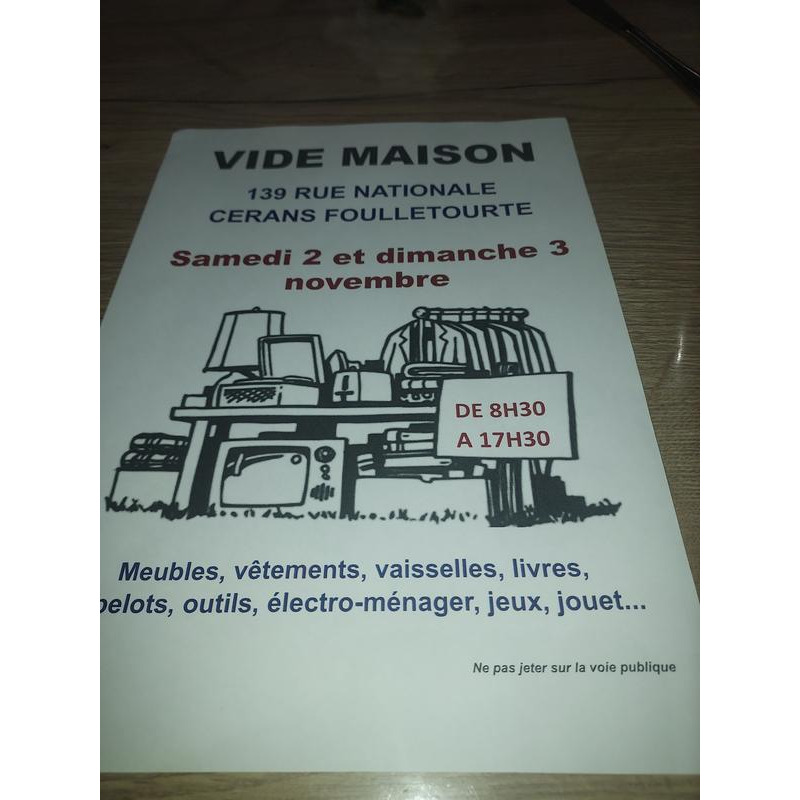 Meubles,vetements,vaisselles,livres,bibelots,outils,electro-menager,jeux,jouer...