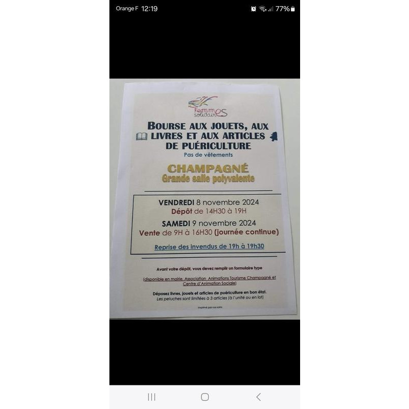 Bourse au jouets, aux livres et des articles de puéricultures. Pas de vêtements