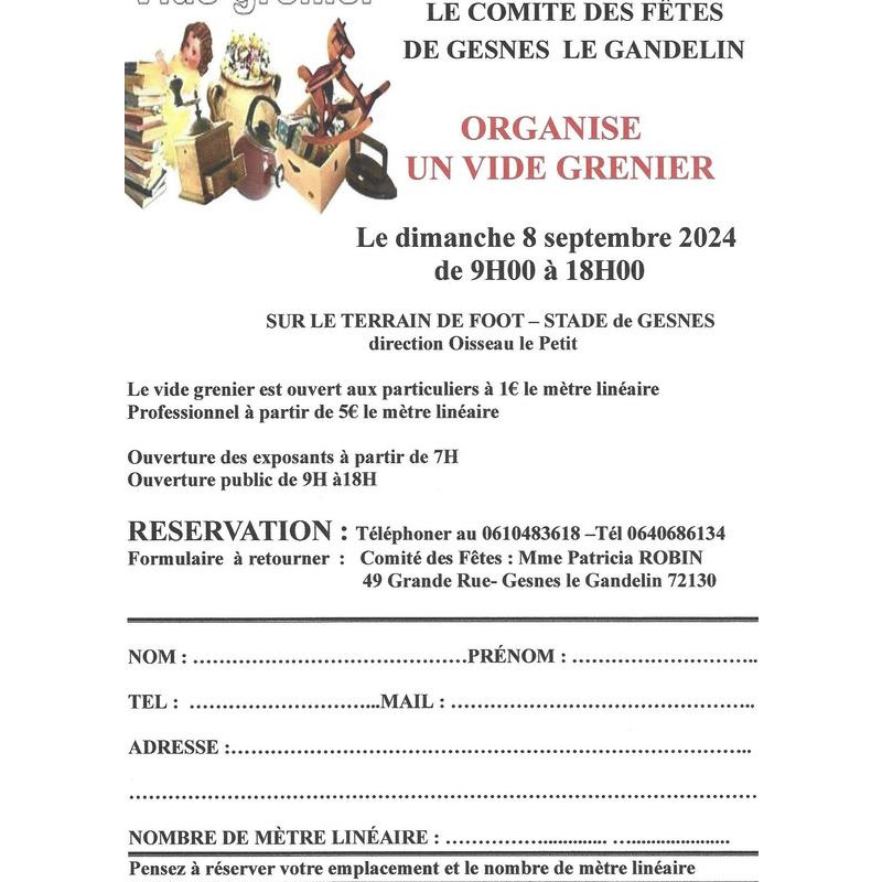 Vide grenier sur le stade de foot de gesnes le gandelinle8 sept 2024