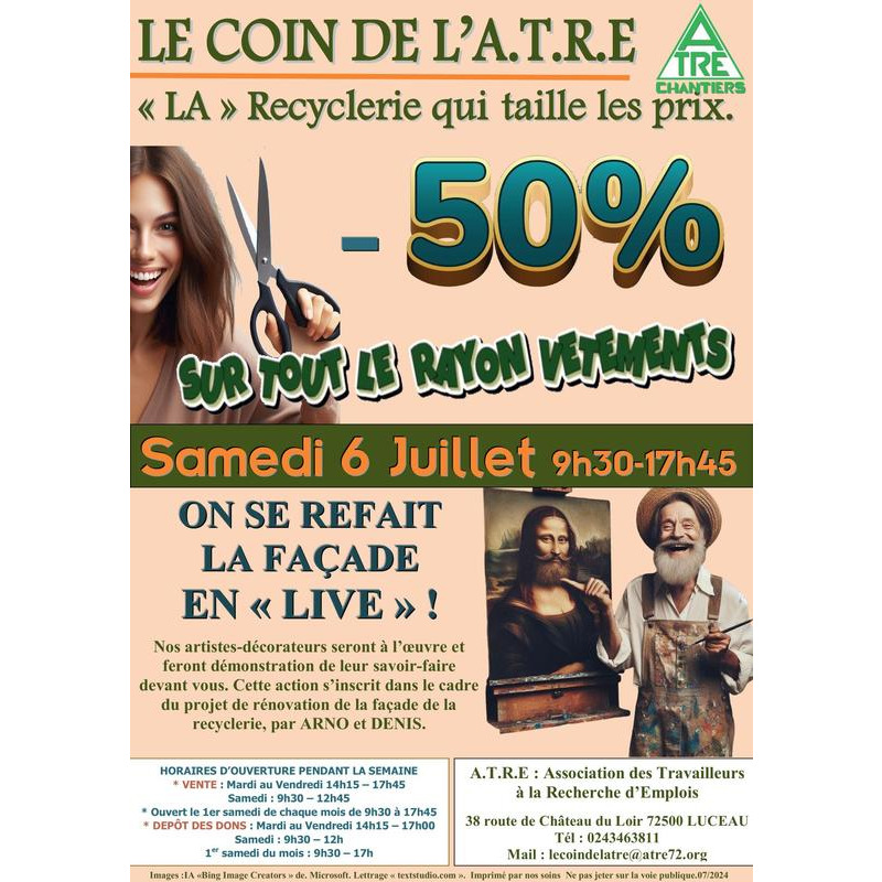 nos artistes-décorateurs seront à l’œuvre et feront démonstration de leur savoir-faire devant vous. Cette action s’inscrit dans le cadre du projet de rénovation de la façade de la recyclerie, par arno et denis.