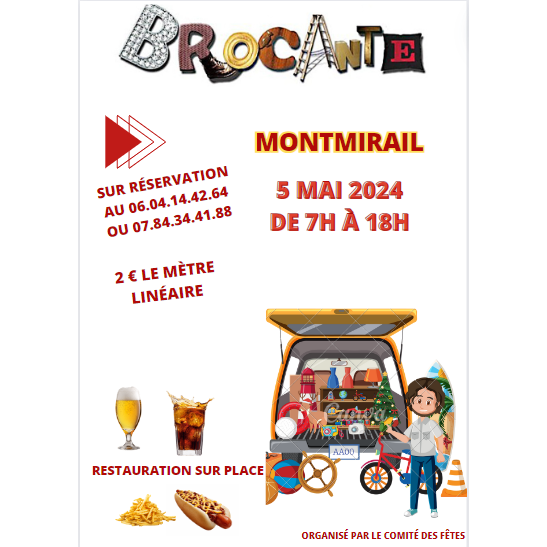 Le comité des fêtes de montmirail organise un vide grenier brocante le 5/05/2024