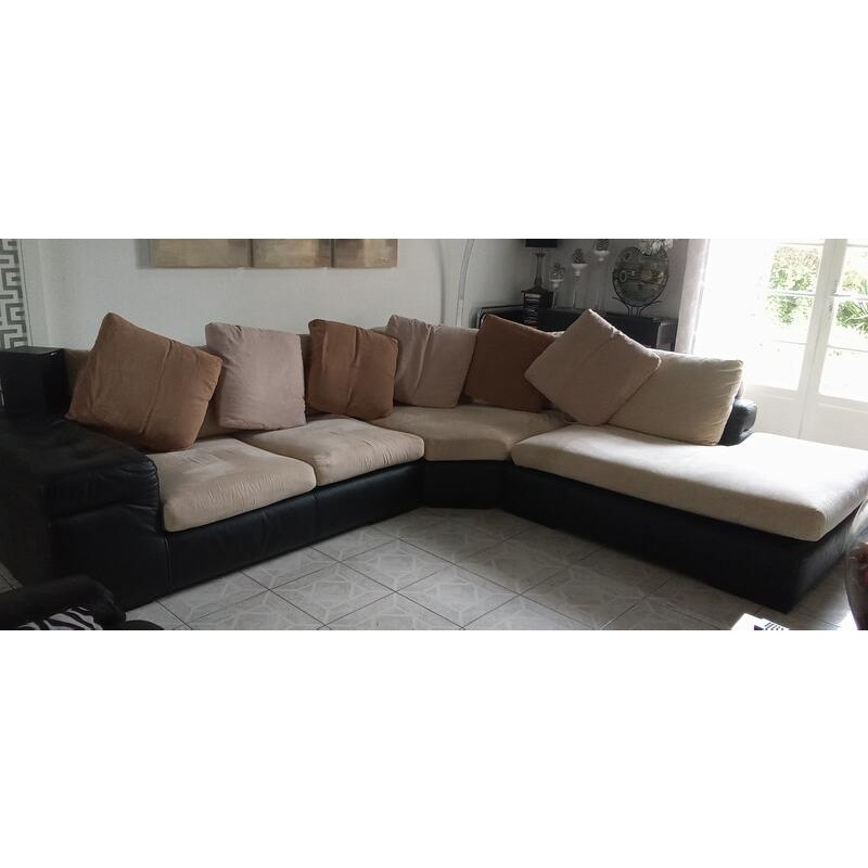 salon d angle structure cuir avec assises tissu ,coussins le tout déhoussable lavable