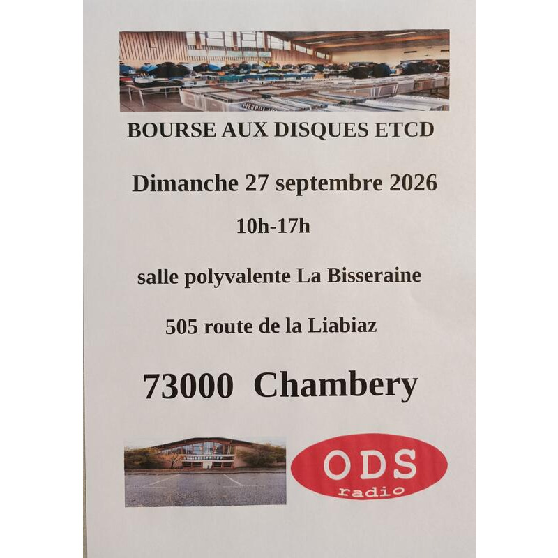 Bourse aux disques vinyles et cd dimanche 27 septembre 2026 10h-17h salle polyvalente la bisseraine 505 route de la labiaz 73000 chambéry entrée gratuite parking à proximité