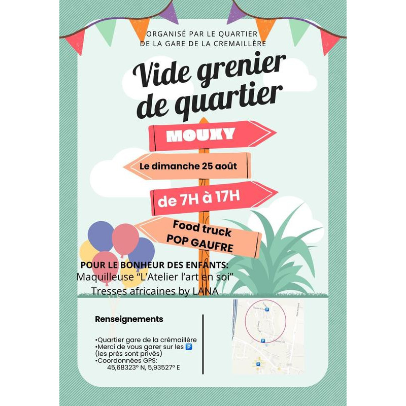 Pour la quatrième année , les habitants du quartier de la crémaillère de mouxy vous invitent à leur vide grenier .