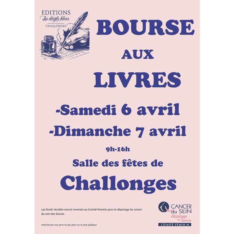 Bourse aux livres - comité féminin - cancer du sein, dépistage des savoie