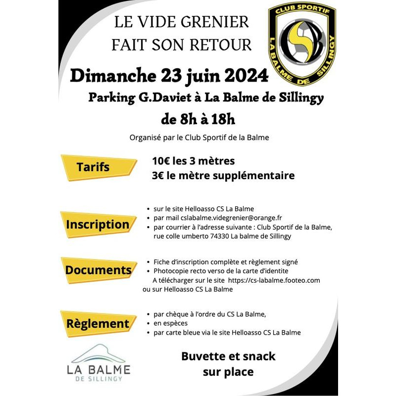Vide grenier, buvette et restauration sur place