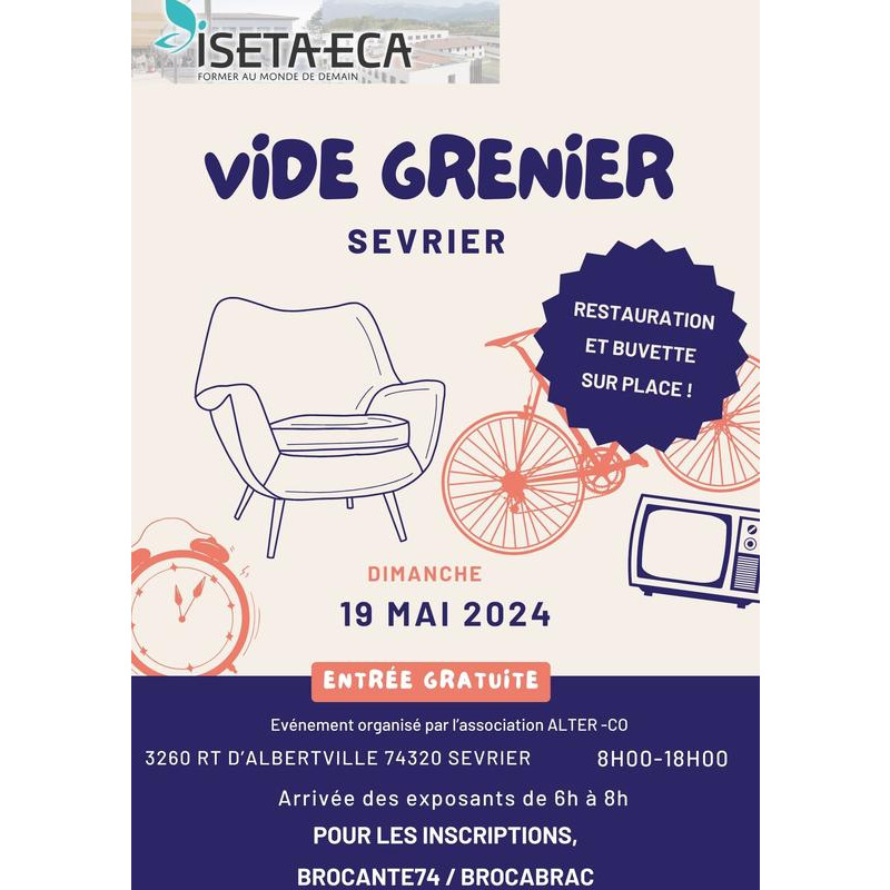 Vide grenier à sevrier , organisé par l'association alter-co, ouvert au public de 8h à 18h, restauration sur place