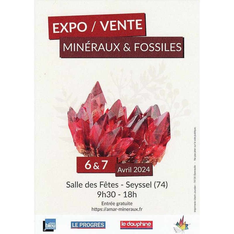 Bourse aux minéraux et fossiles, les 6 et 7 avril à la salle des fêtes de seyssel, organisée par l’association minéralogique d’annecy et sa région.