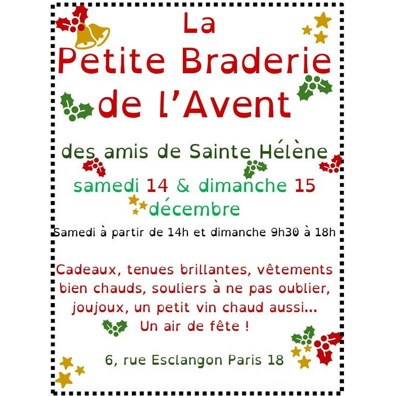 La petite braderie de l'avent des amis de sainte hélène est un moment en communauté sous forme de petite vente solidaire et de moment gourmand de l’amitié, le samedi 14 après midi et le dimanche jusqu’à 18h,