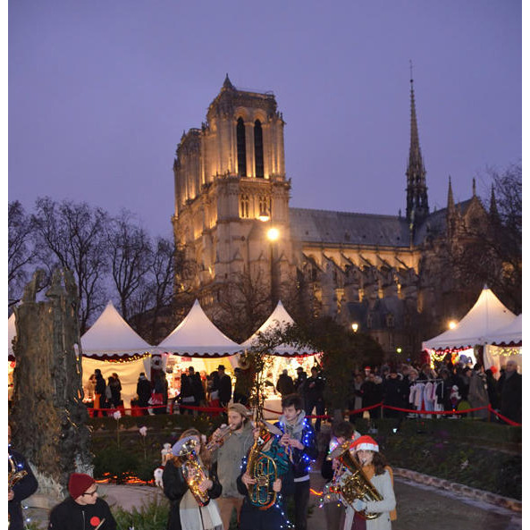 Du 28 novembre au 25 décembre, découvrez le marché de noël à deux pas de notre-dame, où l'artisanat français et les délices régionaux vous attendent.