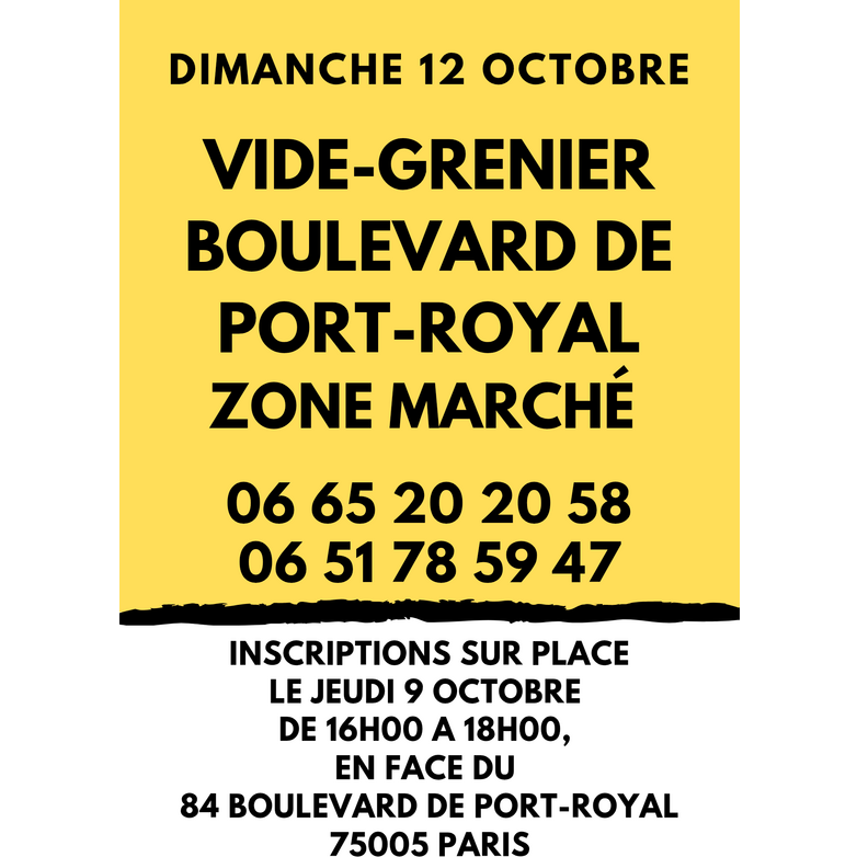 De 06h00 à 18h00, le vide-greniers se déroule sur la zone du marché de port-royal.