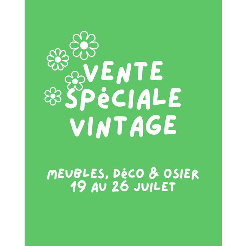 Vente spéciale à emmaüs cauville de meubles, déco, bibelots et vaisselle vintage ainsi que de l'osier.