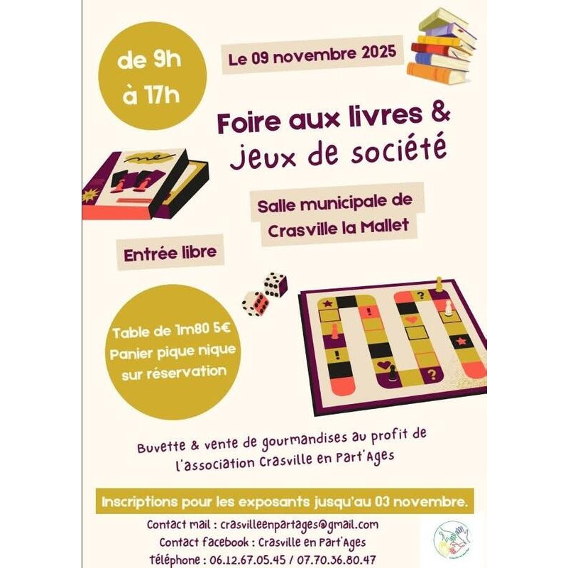 L'association crasville en part'ages organise sa toute première édition de la foire aux livres et aux jeux de société.