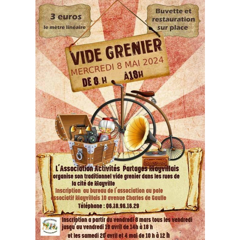 Vide grenier annuel de l'association activités partages mayvillais avec cette année plus de 300 exposants attendus.