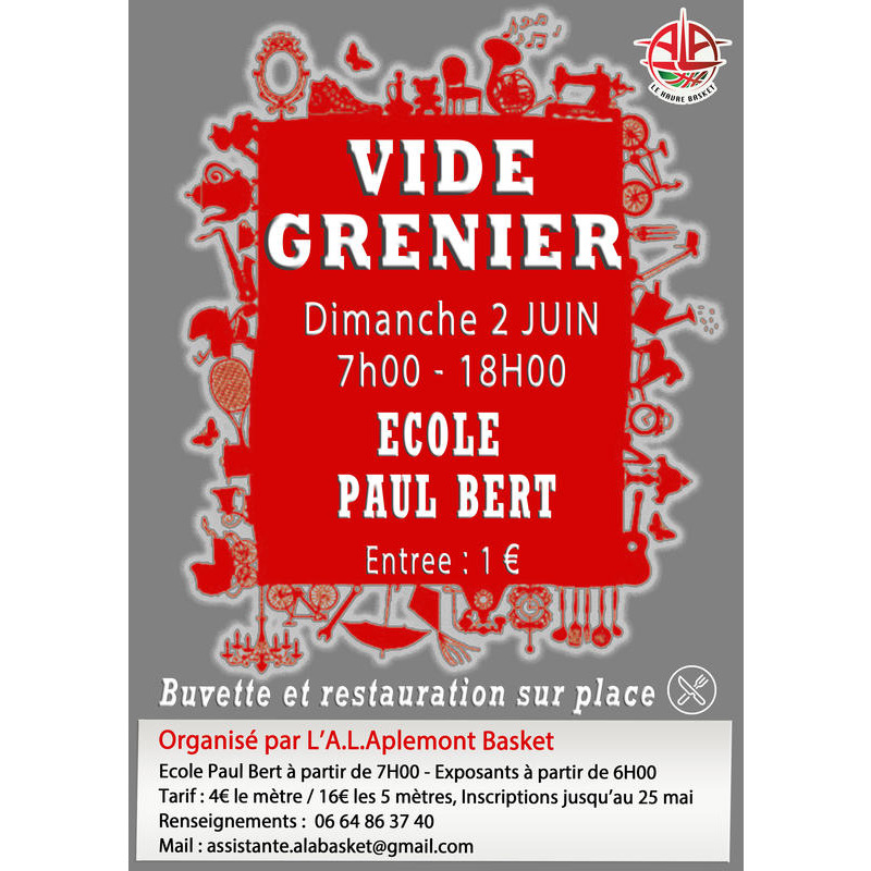 Le club de l’al aplemont le havre basket organise son vide grenier annuel le dimanche 2 juin 2024 dans la cours de l’ecole paul bert 2