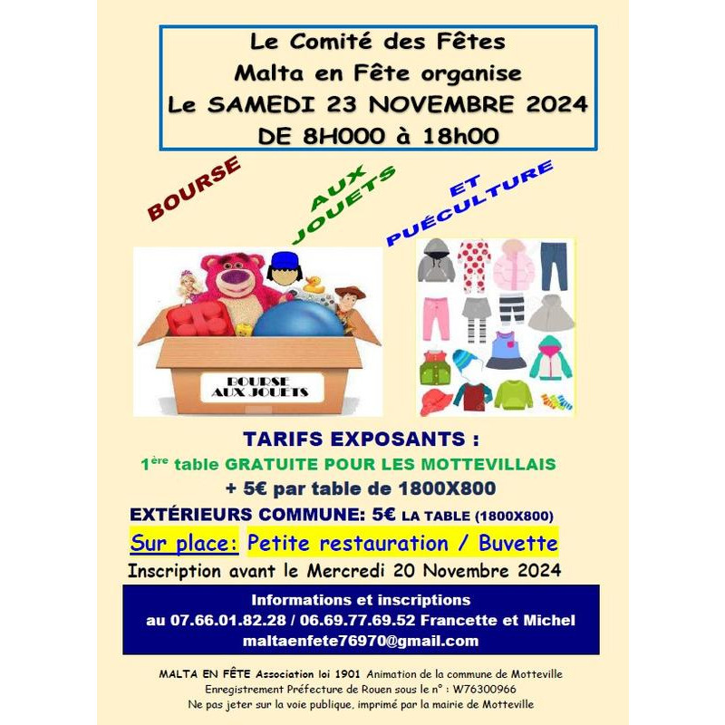 Une occasion de vider armoires et placards et/ou d’acheter des jouets et vêtements à petits prix et de bonne qualité. Sont acceptés : les jeux et jouets en bon état et propres, les puzzles, les jeux électroniques (avec leurs piles), les vêtements en bon état et propres.