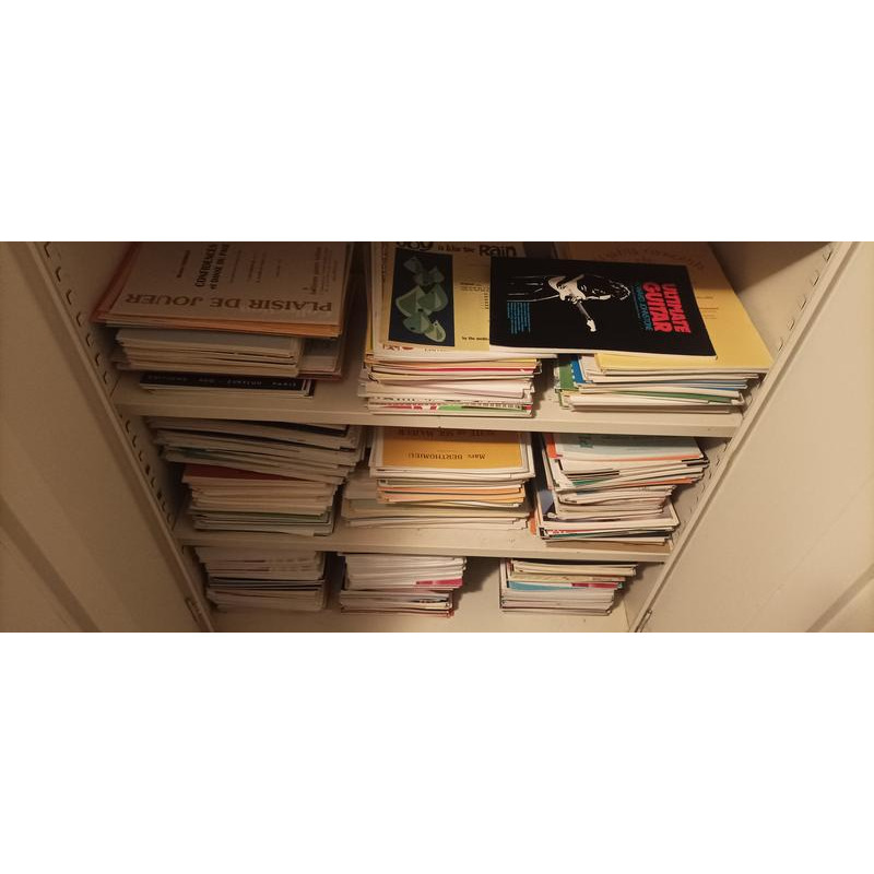 Vide maison special partitions guitare ,violon ,violoncelle ,piano ,accordeon hautbois, cor,flute, clarinette percussion