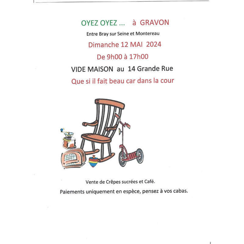 Vide maison que si il fait beau car dans la cour. Vente de crêpes sucrées et café.