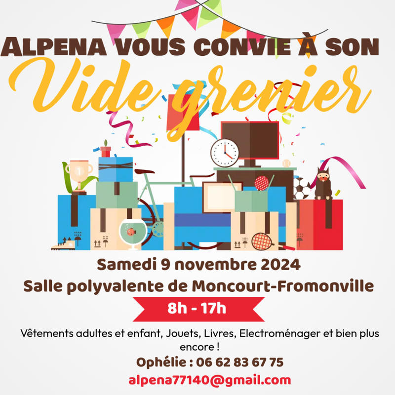 venez chiner parmi une multitude d'objets : vêtements, livres, jouets et bien plus encore ! Que vous soyez acheteur ou vendeur, c'est l'occasion parfaite de faire de bonnes affaires et de rencontrer des gens sympathiques. Notamment les membres d'alpena qui seront présents tout au long de la journée à la buvette ou à certaines tables.