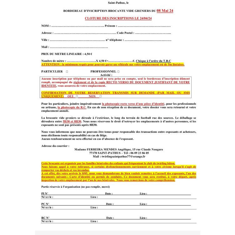 Le twirling bâton club de saint-pathus organise sa traditionnelle brocante le 8 mai 2024.