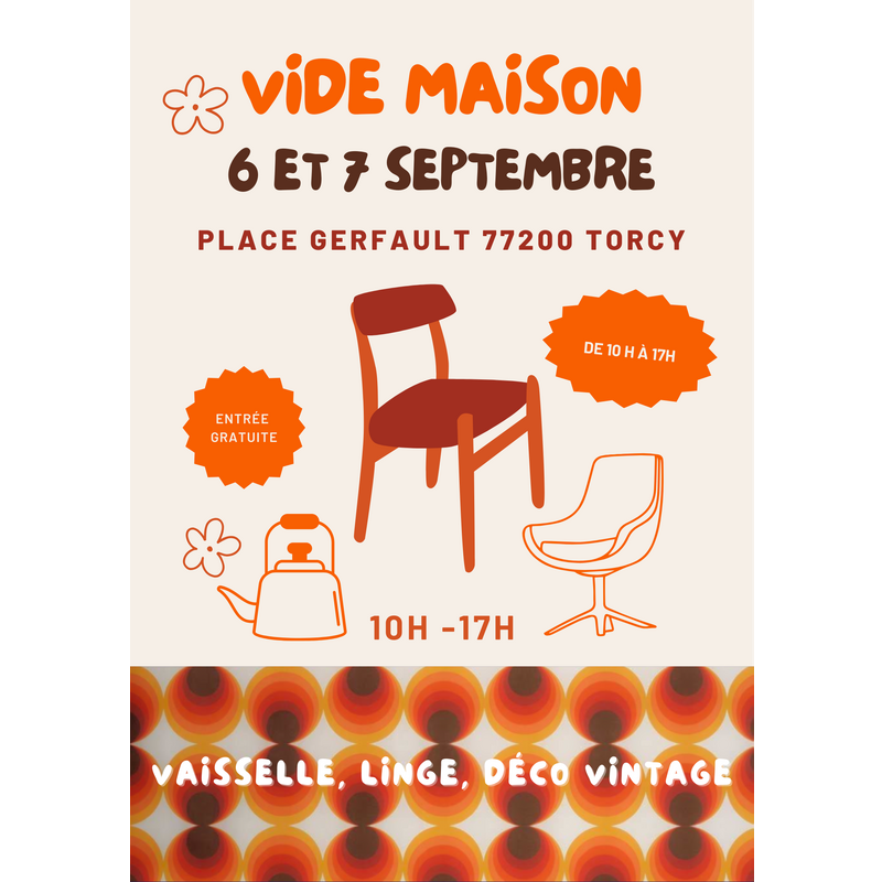 nous vous invitons à notre vide maison les 6 et 7 septembre, de 10h à 17h, au 7 bis place gerfault, 77200 torcy.