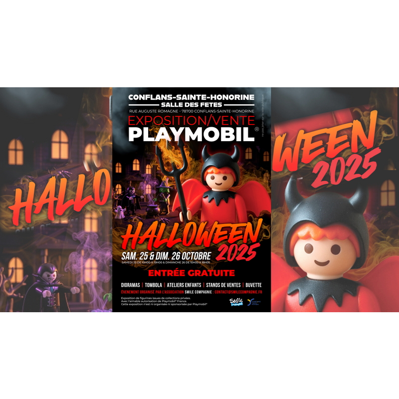 Pendant tout le weekend, sur le thème d'halloween, vous trouverez sur place de magnifiques mises en scène (dioramas), ainsi que des ateliers pour les enfants, une tombola, et aussi des stands de vente de playmobil (neufs ou d'occasion) et même une petite buvette !