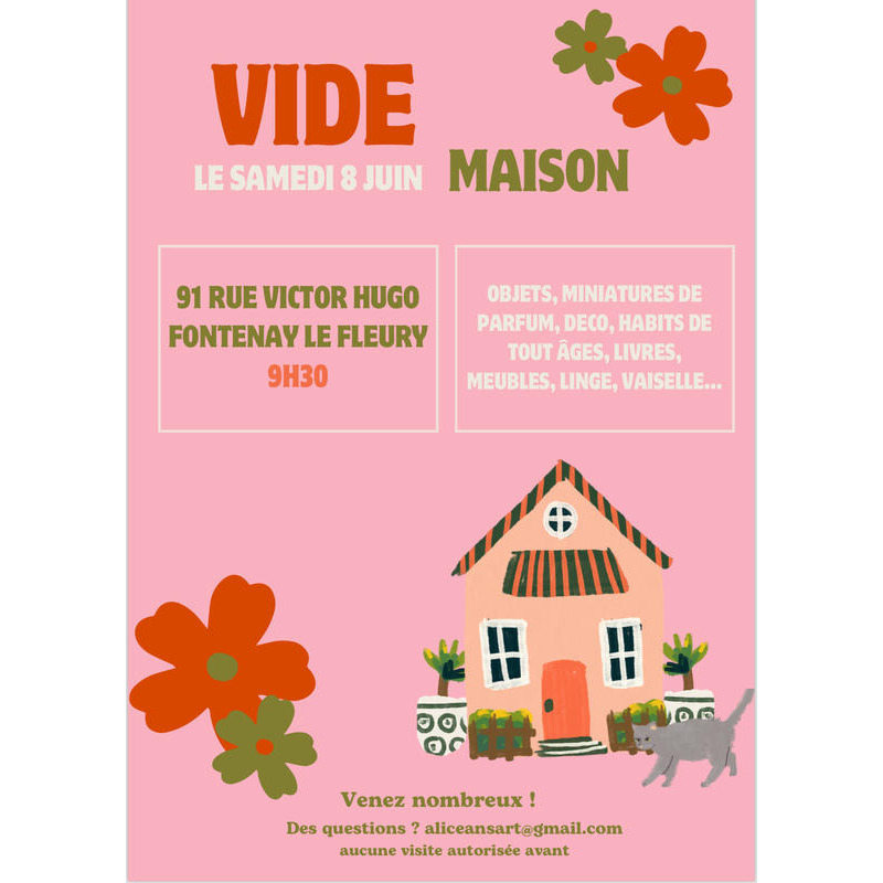 Nous organisons un vide maison ce samedi 8 juin à fontenay le fleury.
