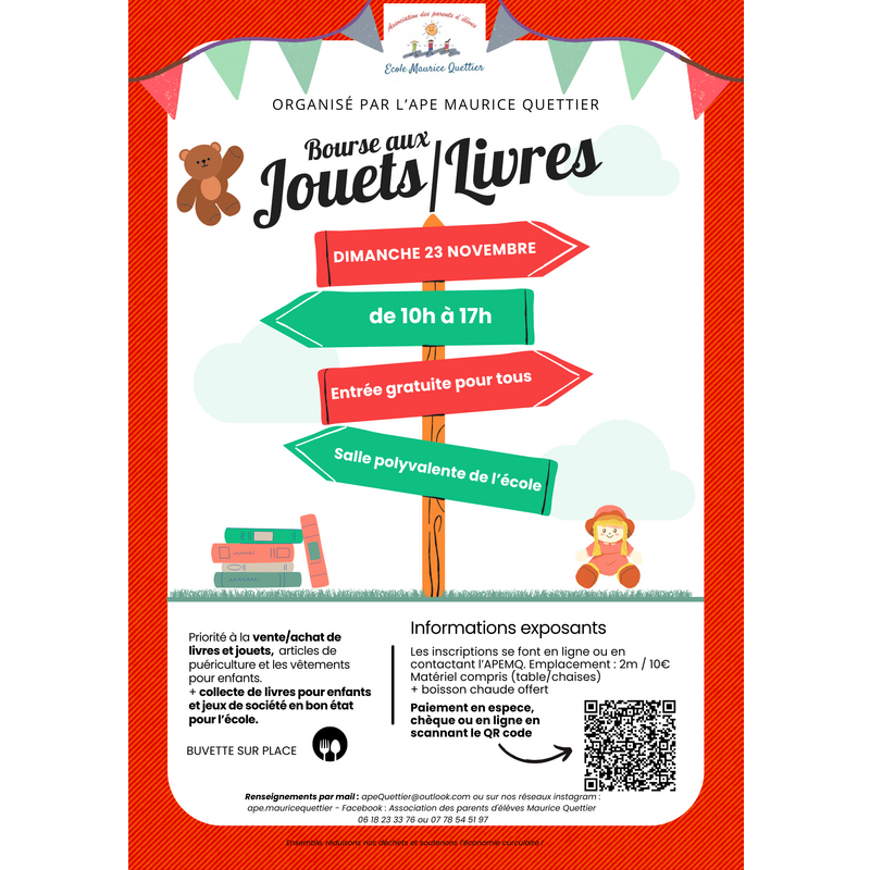 La bourse vise à permettre aux parents de vendre/acheter des jouets, des livres d’occasion, des articles de puériculture et vêtements pour les enfants .