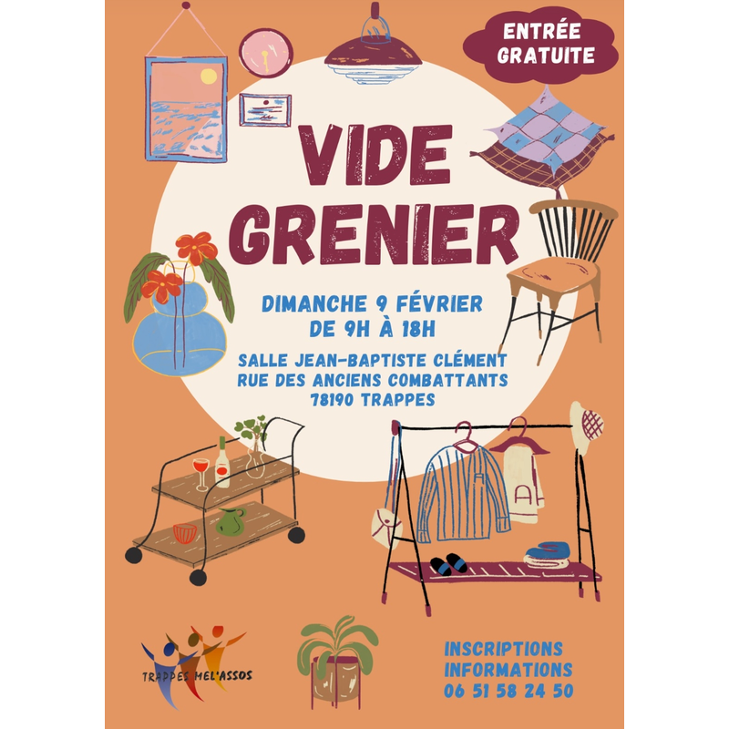 Vide grenier qui aura lieu dans une grande salle chauffée, en centre ville, juste à côté du marché des merisiers.