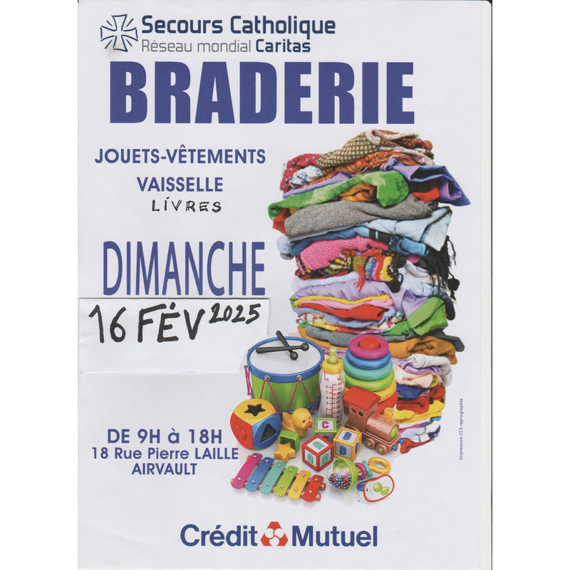 Grand choix de : bibelots, livres, jouets, vaisselle, vêtements enfants et adultes, linge de maison, chaussures, etc...