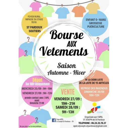 Bourse aux vêtements organisée par l'apel st joseph de st pardoux-soutiers