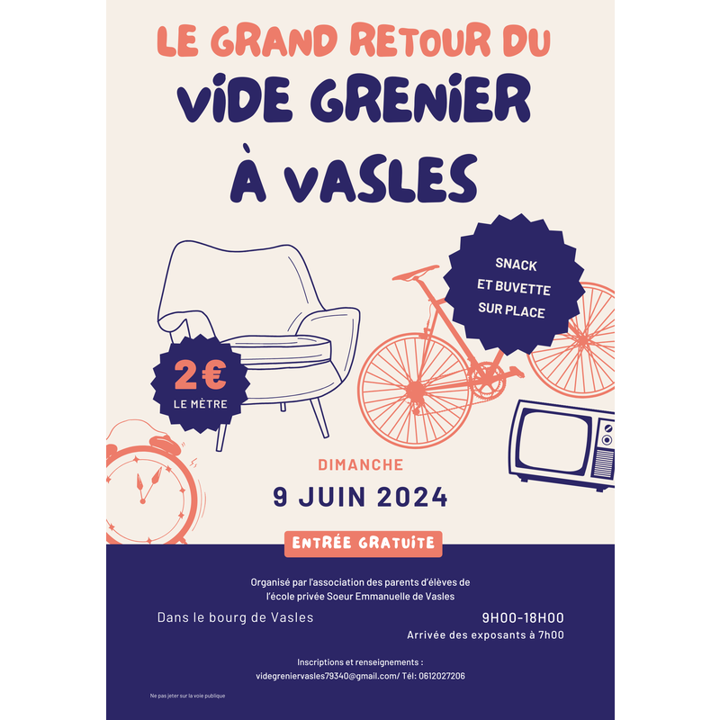 Vide grenier dans le bourg de vasles, snack et buvette sur place.