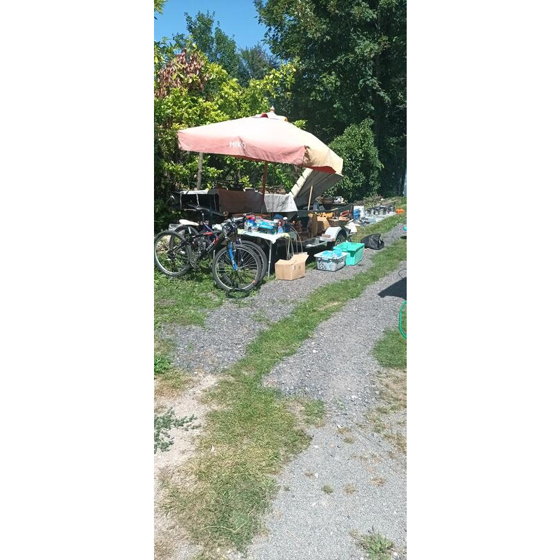 Tous doit partir une chambre à coucher des années 50 en chêne armoire 3 portes, coiffeuse, lit, 2 chaises pailler. 2 chaises styles napoléon, armoire à chaussures et vêtements. Horloge, table avec 6 chaises pailler. Linge, livres romans dessins animés, lecture divers. Objets cuivres, verres à bière différentes marques. Lutres, tente carpiste avec lits chaise, nombreuses canne à lancer. Bijoux fantaisie argent. Vtt canodale tout suspendu taille l, vtt scoot taille s, vtt lapiere suspension réglable taille L. Lot de pieces neuve et d occasion vélo, vtt roues pneus. Décoration jardin. Appareils photos platine disque. Cd, dvd, pièces neuves renault scenic 2 ou megane