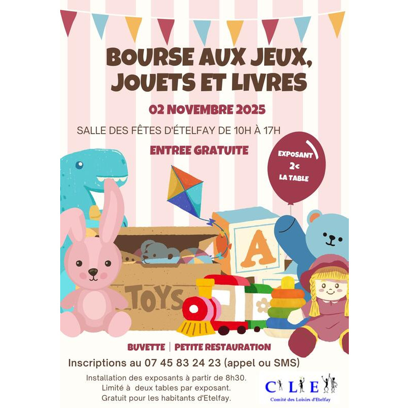Bourse aux jeux, jouets et livres. Pas de portant (pas de vêtement).