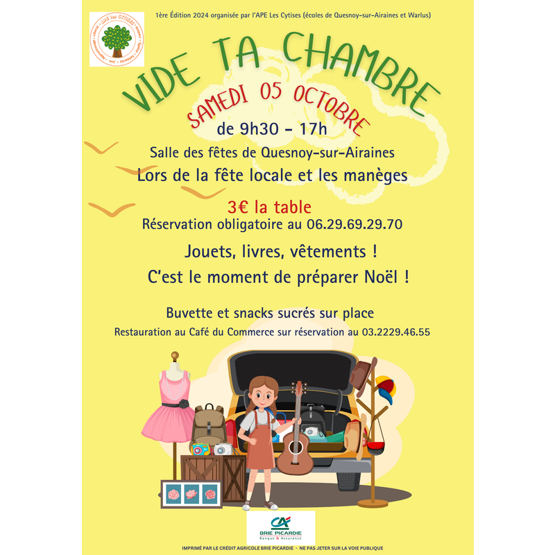 Ape les cytises lance les réservations pour sa 1ère édition 2024 de " vide ta chambre" à quesnoy sur airaines (80270) durant la fête locale !! Venez chiner et profiter des manèges !