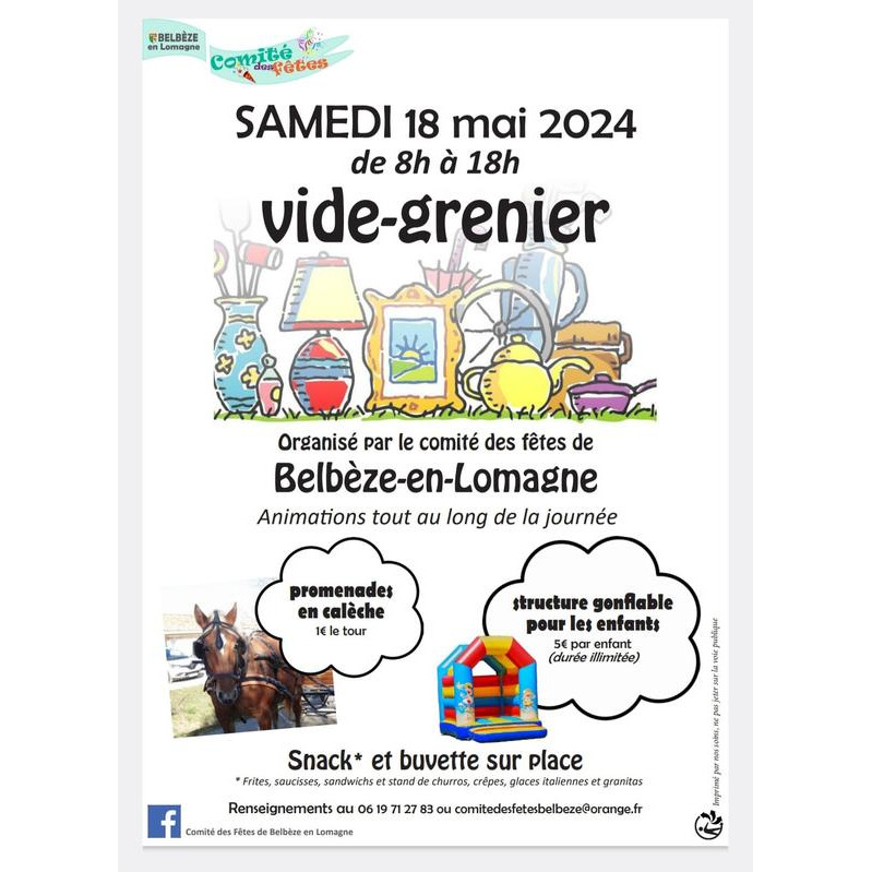 Vide grenier de belbèze en lomagne organisé par le comité des fêtes du village.