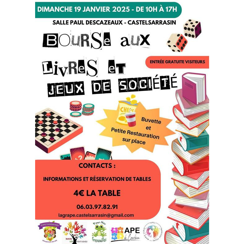 Bourse aux livres et jeux de société organisée par les ape de castelsarrasin.