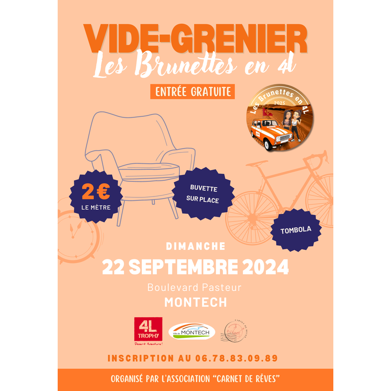 Le vide grenier est organisé par l'association 'carnet de rêves' afin de récolter des fonds pour participer à l'aventure du 4l trophy 2025.
