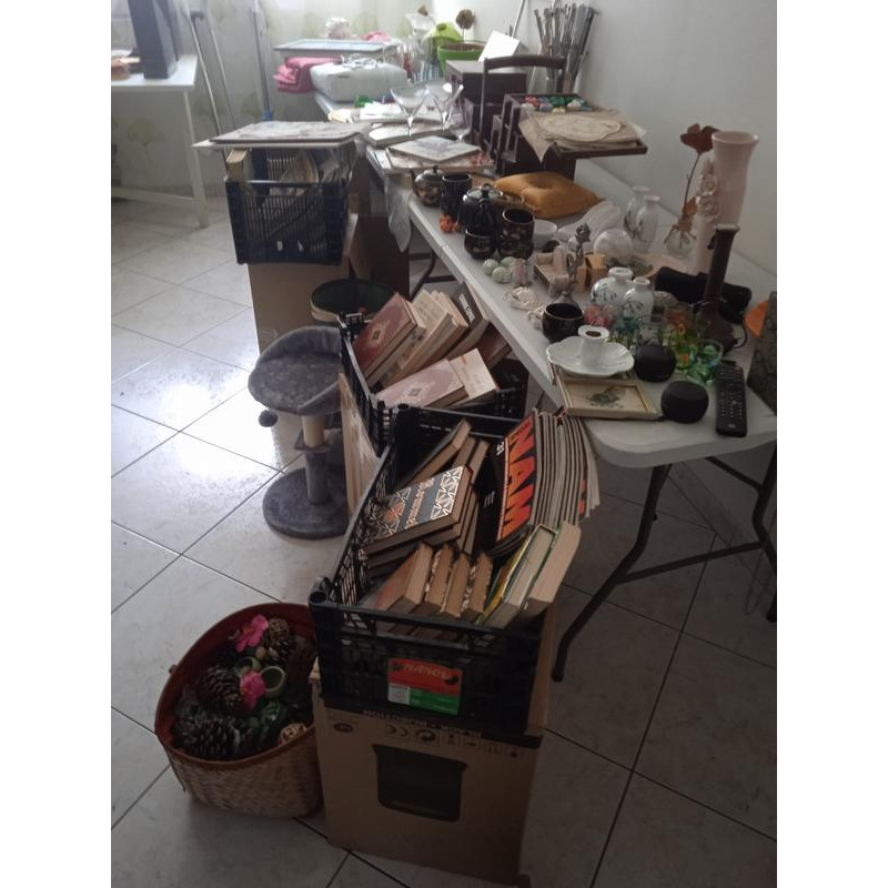 Bonjour vide maison nombreux articles dont un bureau et son caisson table ikea barbecue neuf petit meuble cuisine vêtements draps poupée bijoux et de nombreux articles verres bibelots