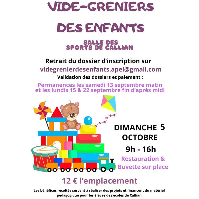 Vide grenier des enfants organisé par l'association des parents d'élèves de callian