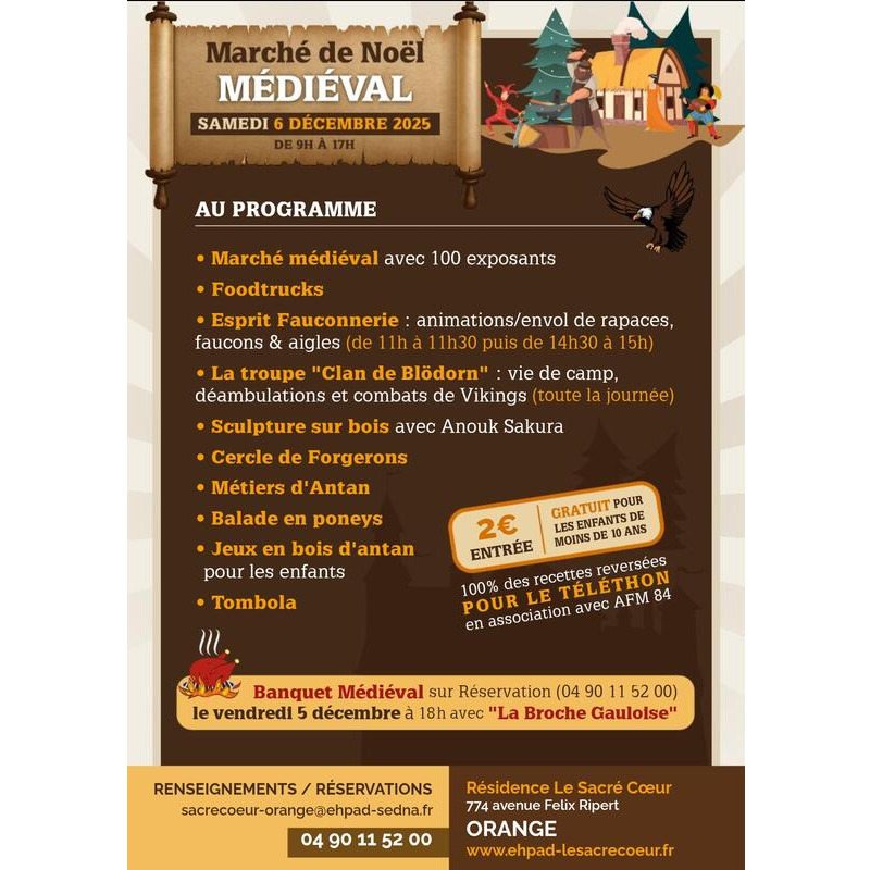 Alors, chevaliers, princesses, artisans, voyageurs et rêveurs, préparez vos capes, affûtez vos épées et rendez-vous le samedi 6 décembre à orange pour un noël comme nul autre, où l’histoire, l’artisanat et la solidarité s’uniront sous la bannière du sacré-cœur médiéval!