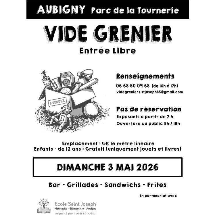 Grand vide-grenier annuel organisé par l'école saint-joseph d'aubigny.