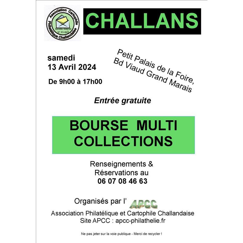 Bourse multicollection organisee par l assotiation philatelique et cartophile challandaise lieu couvert toilettes bar et foodtruck sucre sale entree gratuite ouverte tout publique