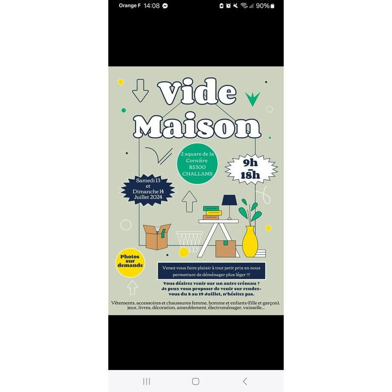 Vide-maison le samedi 13 et dimanche 14 juillet !