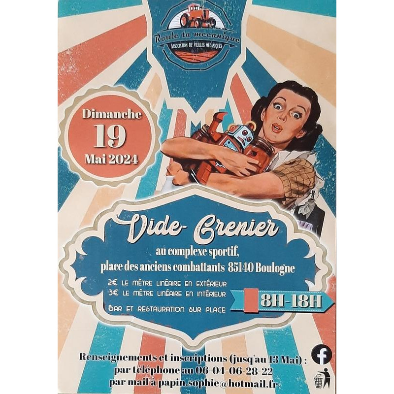Vide grenier organisé par "roule ta mécanique " à boulogne à 6kms des essarts à 9kms de dompierre 20 km de la roche sur yon 6km de chauche