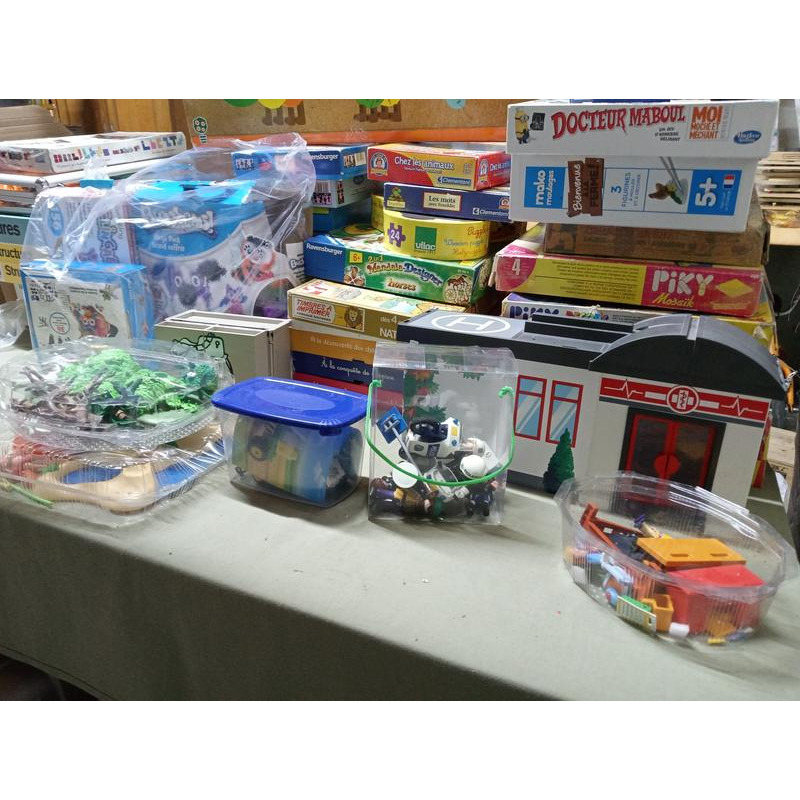 jeux éducatifs, puzzles, jeux de société, jouets en bois, dinette, poupée, playmobil, instruments de musique, déguisements, jeux de plage, poussette, lit poupée, little poney, tutut bolide, dvd enfants ( dora, ours brun, oui oui, trotro)