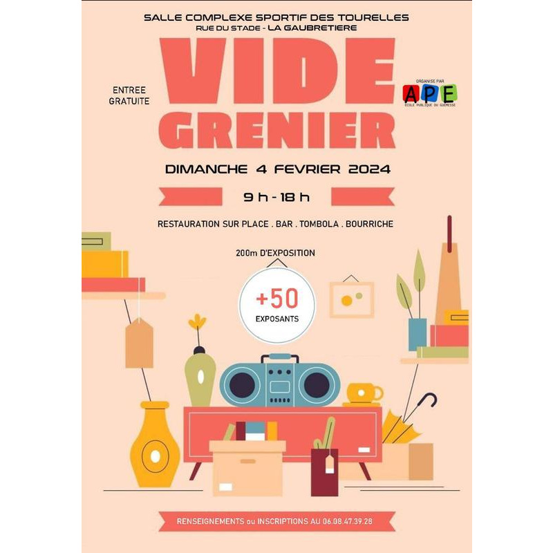 L'association des parents d'elèves du guéméssé organise un vide-grenier le dimanche 2 février de 9h à 18h à la salle de sports "les tourelles".